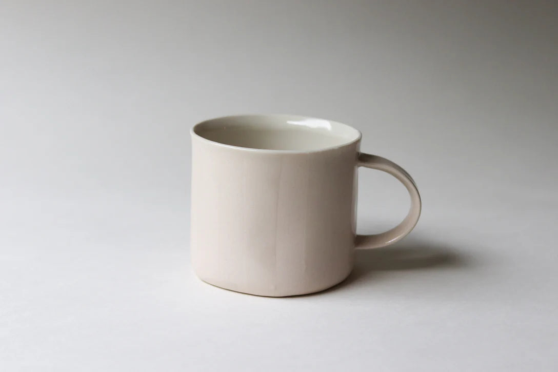 Drink your style in style with this pop of color. This wabi sabi mug was handbuilt from one rolled out slab of clay. It was carefully gathered and altered to become the shape of a cup, a handle was then added. The process is revealed in the details of the mug. It is glazed in clear on the inside with alternating stripes on the outside.