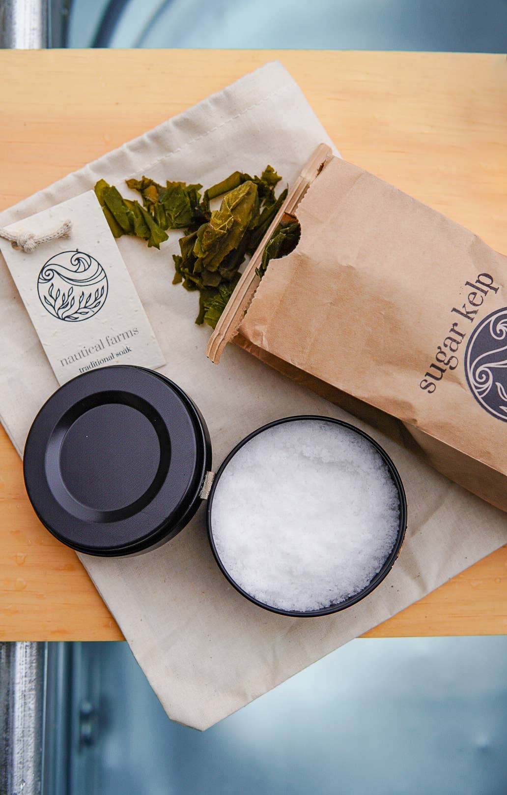 Rest & relax deeper knowing our bath kit is 100% natural, made with nutrient dense, ocean farmed, sun-dried sea kelp, paired with solar dried Maine sea salt. This luxurious soak offers a truly calming and mindful experience. Our soak kit relieves dry skin, purges the body of toxins, and alleviates sore muscles.